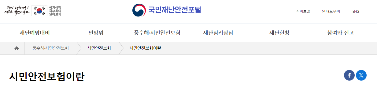 '국민재난안전포털'에 들어가서 시민안전보험에 대해서 확인이 가능합니다.