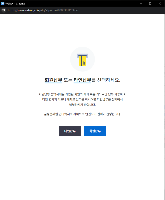 타인 명의의 계좌나 카드로 납부시 선택하면 됩니다.