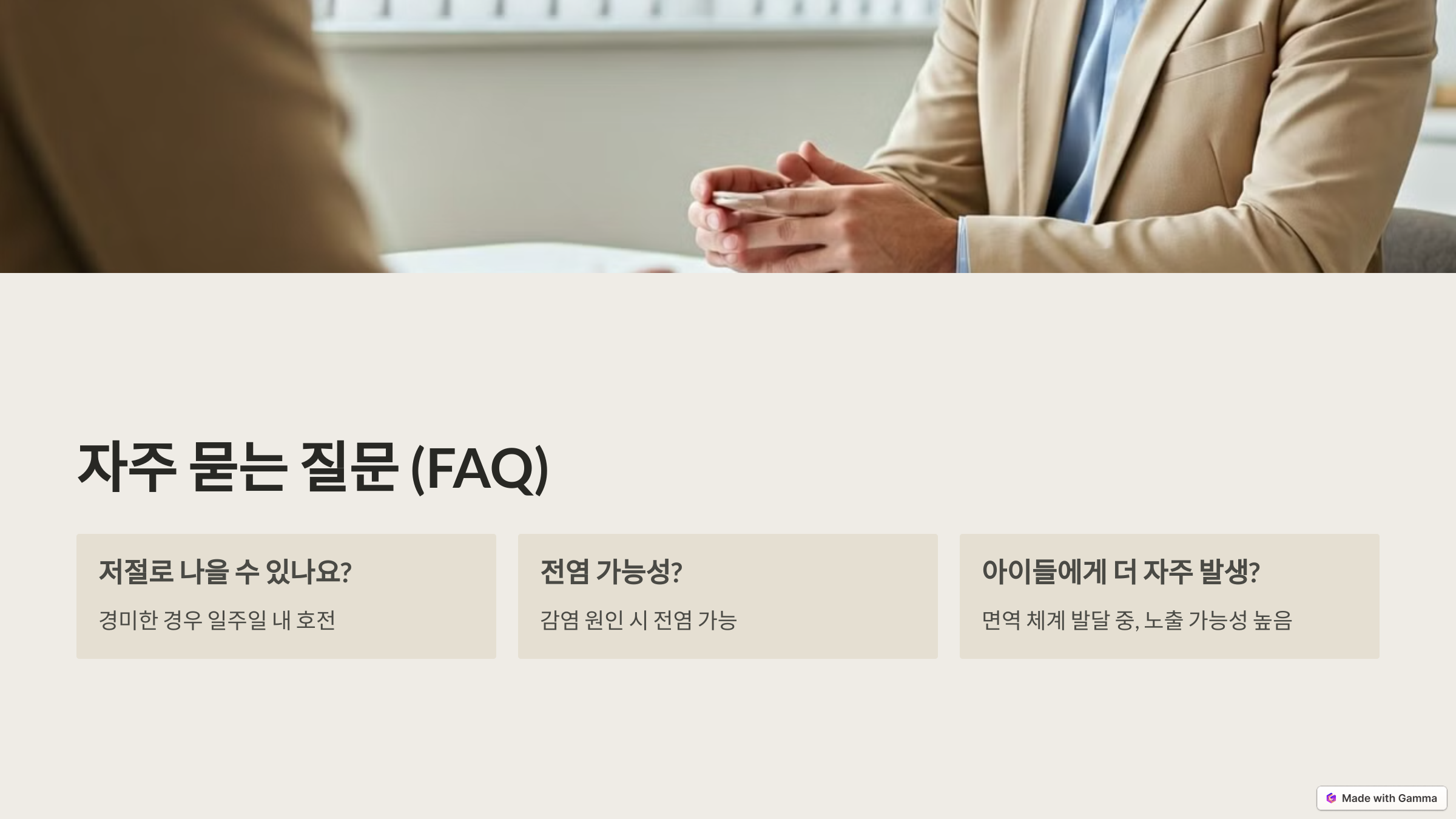 - 충분히 수분 섭취하고 건강한 식단으로 면역력을 강화하세요.