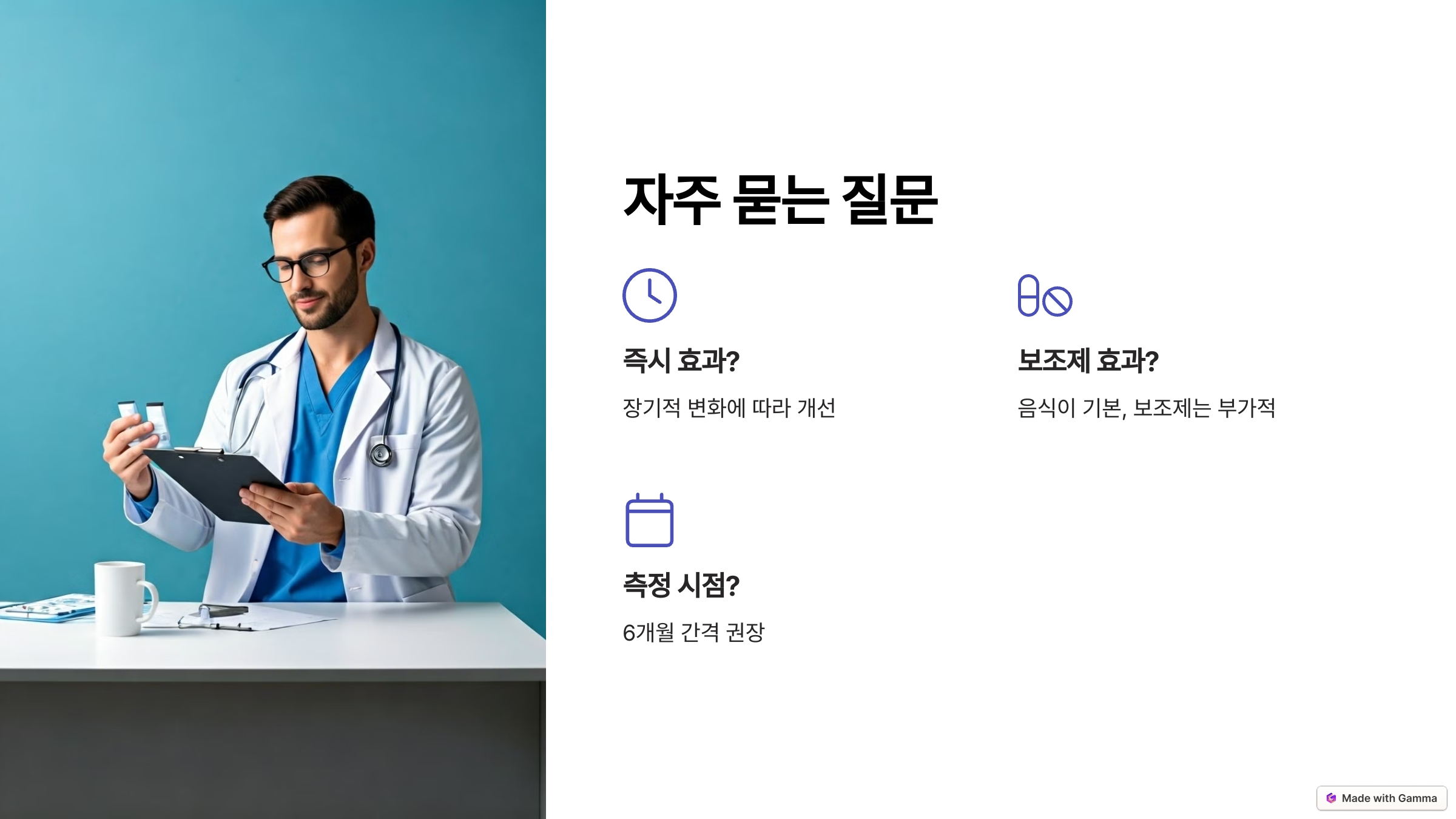 보조제는 음식만큼 자연스럽고 장기적인 효과를 보장하지는 못합니다. 음식이 기본이 되어야 합니다.