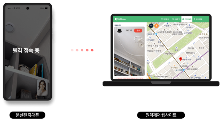 원격제어 통해 분실 휴대폰의 실시간 현재 위치를 확인하고, 분실 이후의 시간 별로 이동경로를 조회할 수 있습니다.
