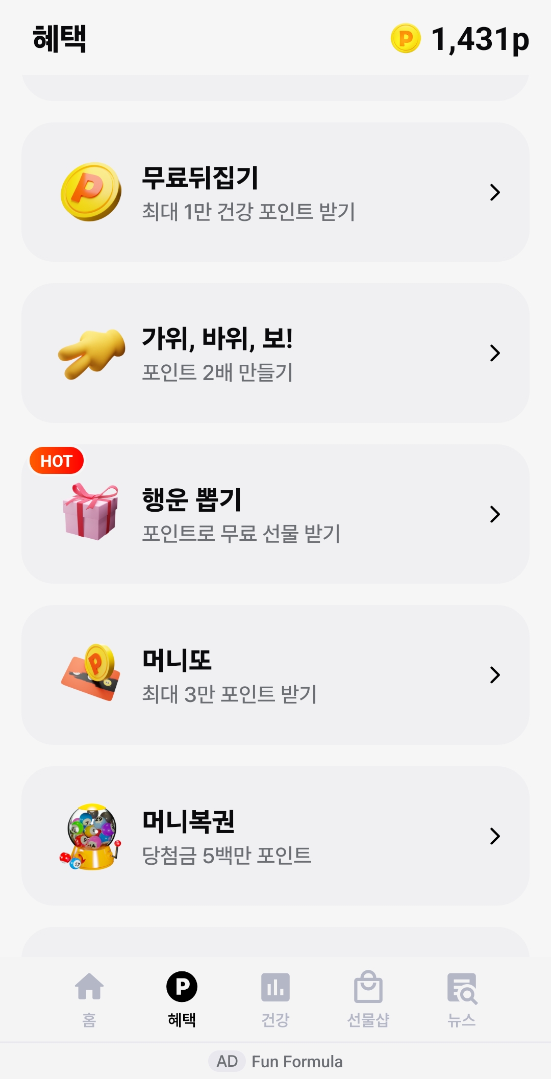 이외에도 머니복권이 있습니다. 이밖에도 건강퀴즈 등 다양한 미션과 이벤트가 있으니 꼭 한번 해보시길 바래요.