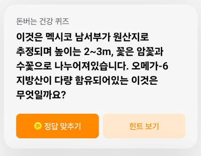 머니워크 7월26일 돈버는건강퀴즈정답(ㅇㅅㅅ) : 멕시코 남서부가 원산지로 추정, 오메가-6지방산 다량 함유?