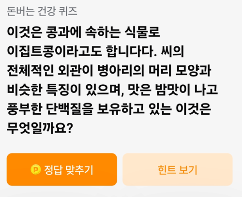 머니워크 7월27일 돈버는건강퀴즈정답(ㅂㅇㄹㅋ) : 콩과에 속하는 식물, 이집트콩?
