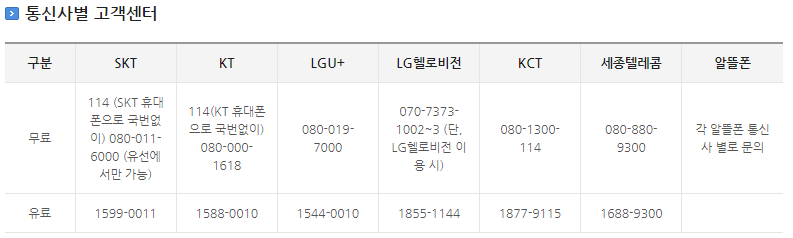 혹은 통신사 고객센터로 연락하여 해당내용을 문의하시면 됩니다.
