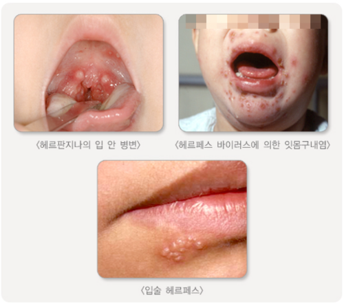 수족구병과 비슷하지만 구별해야하는 병이 여러 가지 있습니다. 주로 입 주위나 입 안에 궤양이나 물집이 생기는 병들인데, 병마다의 특징으로 구별이 쉬운 경우도 있으나 어려운 경우도 있습니다.