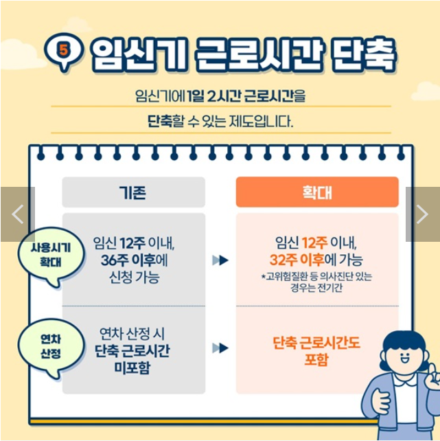 임신기에 1일 2시간 근로시간을 단축할 수 있는 제도입니다.