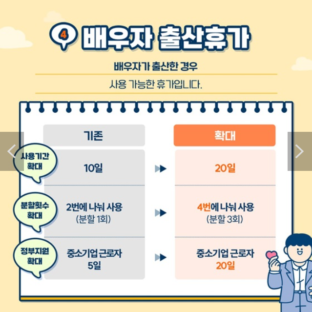 배우자가 출산한 경우 사용 가능한 휴가입니다.