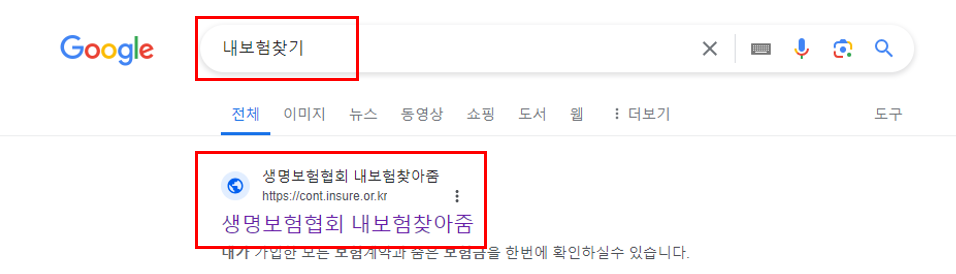 구글이나 네이버, 다음 검색창에 '내보험찾기'를 입력합니다.